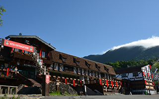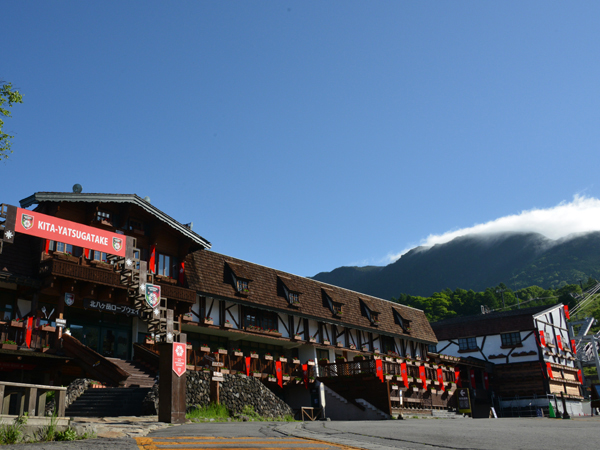 山頂駅(標高2,237m)へロープウェイで上がります。八ヶ岳の北端に位置する北横岳と縞枯山の間から眺める、美しい山岳風景をお楽しみ頂けます。